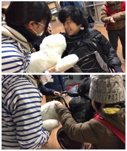 毎朝,多くの子どもたちが「おはよう」と声をかけたり,頭をなでたり,抱きしめたり,それぞれなりの方法で「くうちゃん」に挨拶をしています。