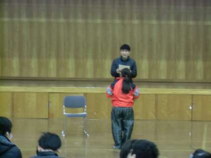 中学部では,先日行ったスポーツデイの表彰式を行いました。