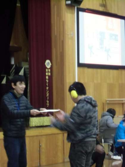 一人ずつ,記録を書いた表彰状を,前に出てもらいました。