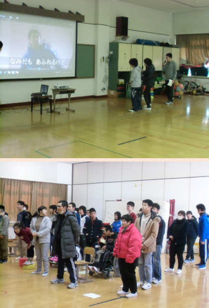 高等部3年生の学年集会では,火曜日の午後に取り組んできた「プロジェクト」の発表をしました。それぞれのプロジェクトが順番に前に出て,取り組んできたことを発表しました。