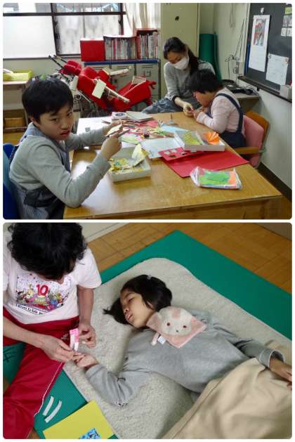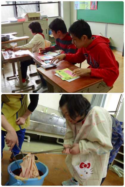 新入生を迎える会の準備をしていたり,友達と協力して教室の掃除をしていました。