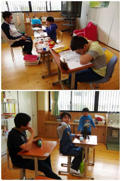 算数の計算をしている人,文字の学習をしている人,身体の学習をしている人,マッチングの学習をしてる人などがいました。