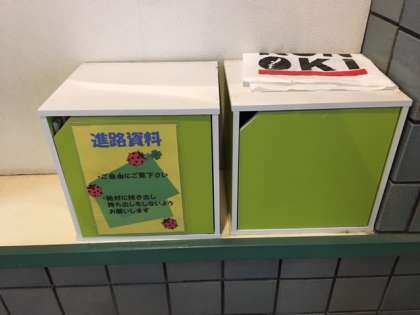 本校では,PTA本部役員の方が,「進路資料」をPTAの皆さんにいつでも気軽に見ていただけるようにしておられます。玄関ホール左奥に設置されている「進路資料」と書かれた棚の中に,進路に関する様々な資料が置いてあります。