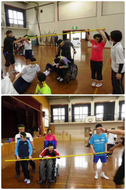 高等部は,午後から学部全体で体育館にて学校祭体育の部の練習をしていました。