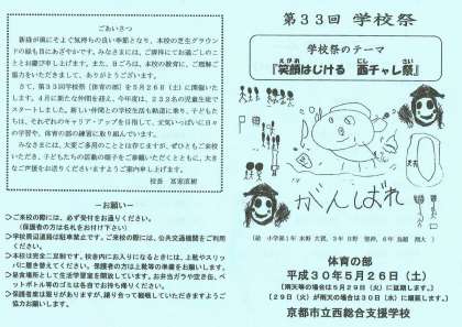 いよいよ学校祭体育の部の本番の日が近づいてきました。学校祭体育の部のプログラムを掲載させていただきます。是非,子ども達へのご声援をお願いします。