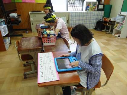 学校祭体育の部の練習に行く前,朝の個別課題学習の時間にiPad鍵盤アプリで,「ハッピー・バースディー・トゥ・ユー」の演奏練習をしていました。