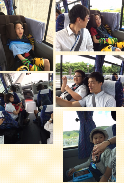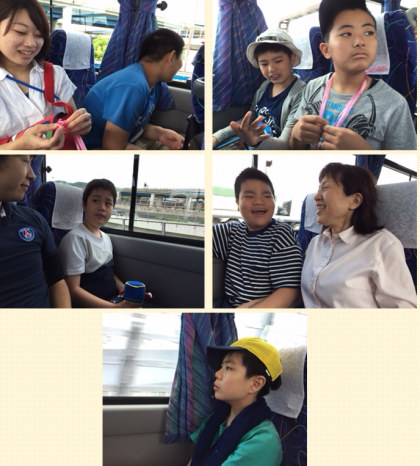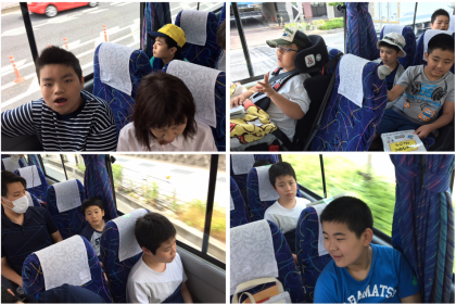 さあ、いまからバス内レクリエーションです!みんなで歌って大盛り上がり!