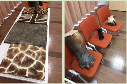 カバ、キリン、クマの足も触りました…すごく重いね。