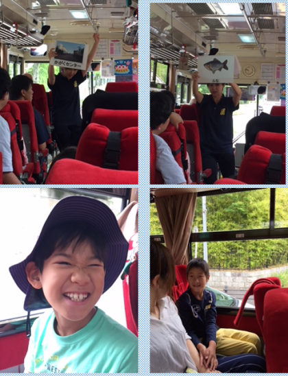 小学部4年生はバスの中で「科学センタークイズ」をしました。みんな大盛りあがり!