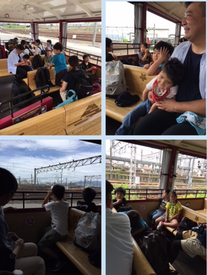 みんな、お待ちかねのSLスチーム号に乗車!車窓から見える新幹線や在来線、貨物列車に大興奮!大きな汽笛を鳴らして出発進行!