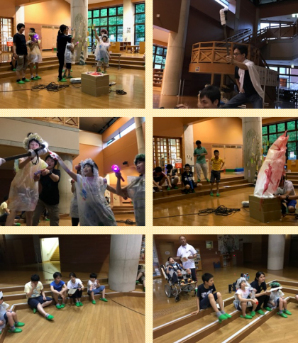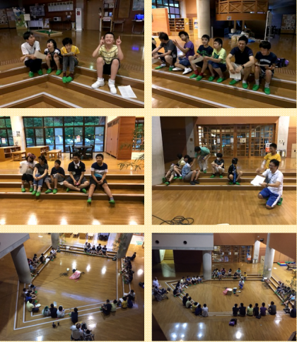 残念ながら室内ですがキャンプファイヤーが始まりました。