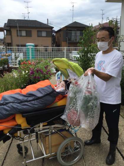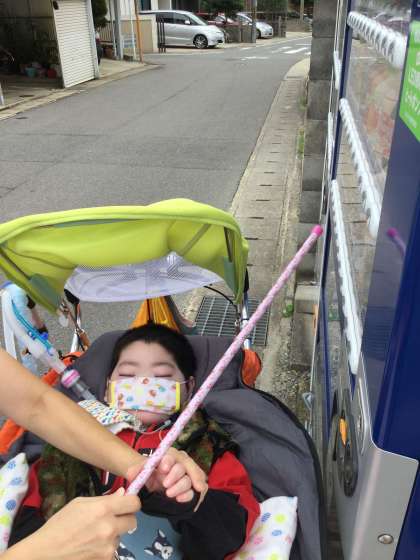 自動販売機でジュースを買ったり、お花屋さんで敬老の日のプレゼントを買ったりしました。