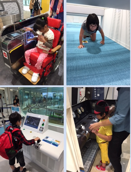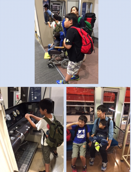 お弁当でお腹いっぱいになったあとは、館内の見学や体験活動をしました!模型の電車を走らせてたり、停止させたりしました!鉄道を満喫しました!