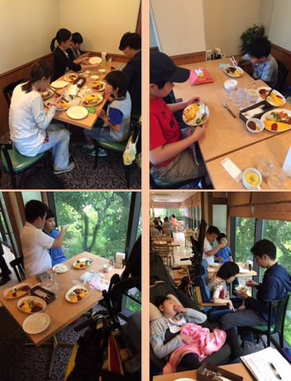 ボウリングのあとは、近くのレストランでランチを食べました。ハンバーグやオムレツ、コーンスープなど、みんなの大好きなものばかり!いっただきま〜す!