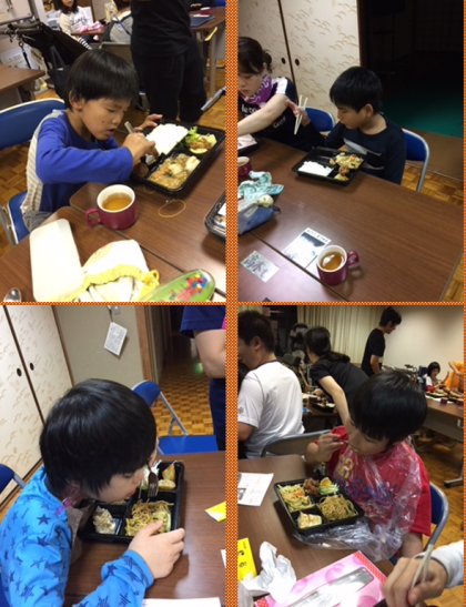 残念ながらボウリングの帰り道は雨が降っていました。学校に帰ってからは入浴を済ませ、みんなが楽しみにしていた中華弁当の夕飯です!いただきます!