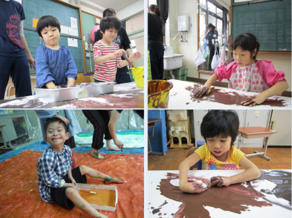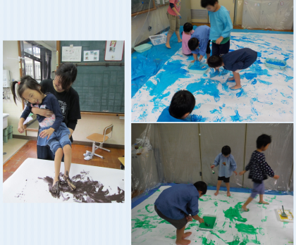 筆や刷毛でぬったり,手や足で塗ったり…!