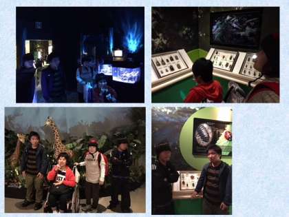 魚や鳥など本物の生き物、昆虫の標本、映像を楽しんでいます。