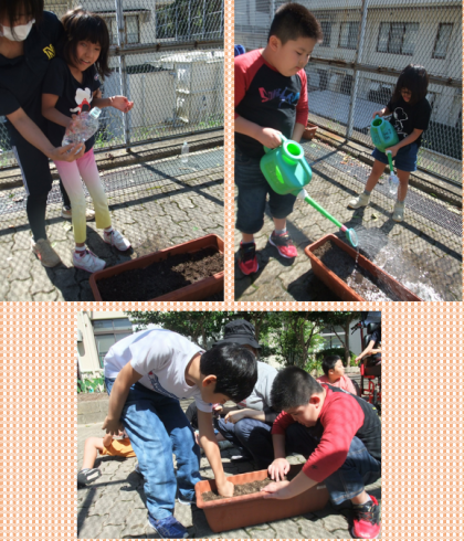 今年度,二回目の種まきたっだので,自分から積極的に土や種に触る姿が見られました。