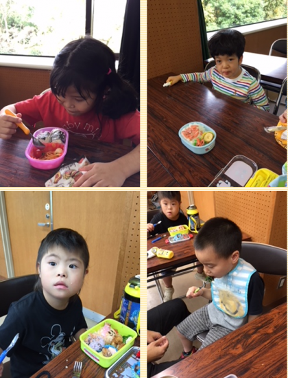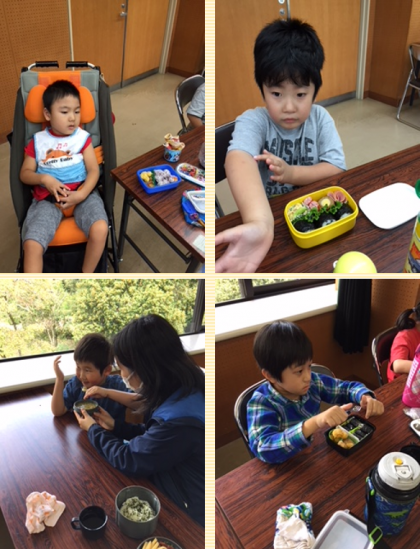 みんなが楽しみにしていたお弁当の時間です!フタを開けて、「わ〜!」と嬉しそうです!いただきます!