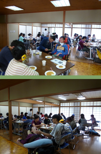 飲んで食べた後に,修学旅行の2日目のグループ別活動の写真を見ながら振返りをしました。