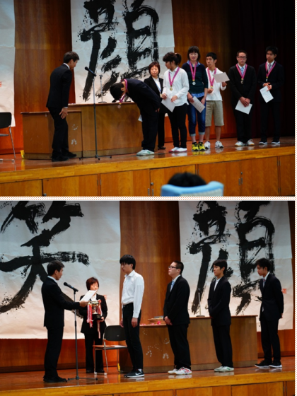 終業式のあと,これまでに行われたスポーツ大会や作品展の表彰式を行いました。