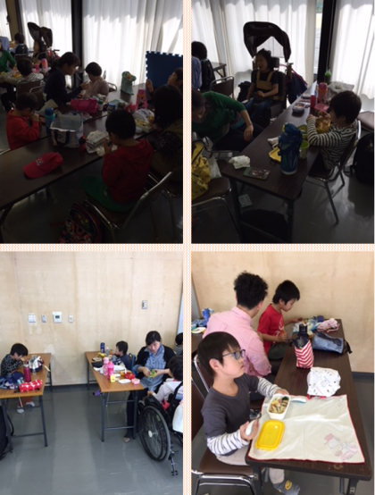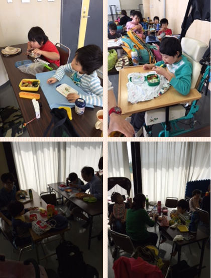 お家から持ってきたお弁当を食べました!フタを開けて、みんな笑顔で嬉しそうです!いただきます!