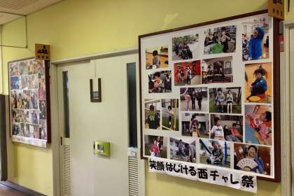 校長室前のスマイル掲示板に,中学部1年生校外・宿泊学習や10月のスマイル写真を掲示しました。