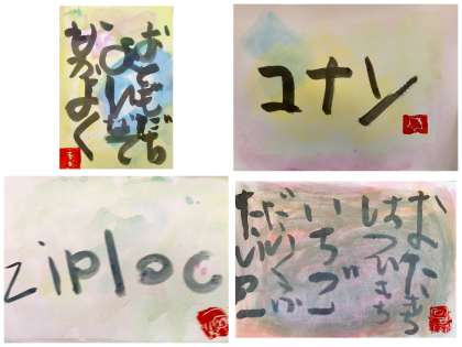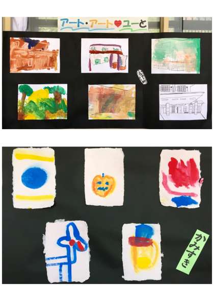 中学部3年生の教室前廊下に展示されている作品です。学級やユニットで制作したそうです。