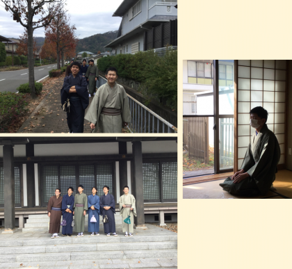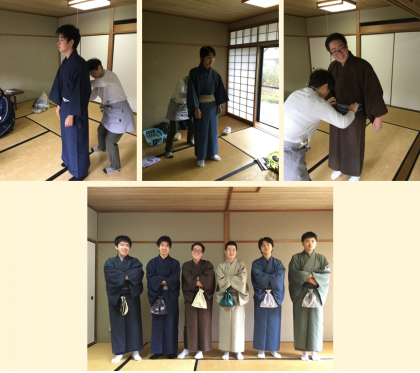 着付けの先生にお越しいただき,着物を着る体験をしました。着物を着るのに必要な服を説明していただき,一人ずつ着つけてもらいました。着慣れない着物にわくわくしながら着付けをしてもらい,全員が着付け終わる時には,「江戸時代やったらどんな職業かな?」「ほんまもんぽいなぁ」など話は尽きず,大盛り上がりでした。着物に合わせて草履をはいて,西念寺までお出かけもして,桂坂の紅葉も見て,季節の移り変わりも楽しみました。
