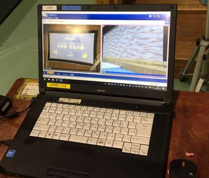 学校祭文化の部のステージ発表の様子をテレビ会議システムを利用して教室でも(最大10か所)観られるように準備しています。