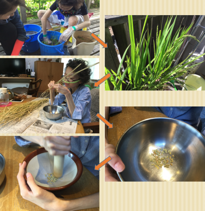 2週間程,稲を乾燥(している間鳥に食べられたため量が減ったようです)し,今日稲を「脱穀」(だっこく)と「もみすり」をしました。量的には少ないですが,色んな困難にも耐えた米です。