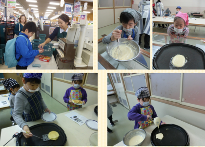 調理は,初めての調理,大好きなホットケーキにみんなワクワクしていました。