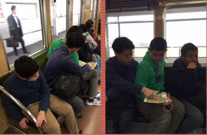予定通りの阪急電車に乗りました!みんな、電車が嬉しい様子です。でも、さすが6年生!静かにルールを守って乗車中です。