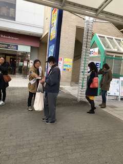大原野中学校校長の講演後,本校冨家校長からは西総合支援学校の保護者の思いをお話しいただきました。その後,ラクセーヌ周辺で街頭啓発活動を行いました。