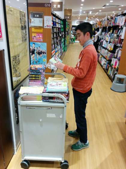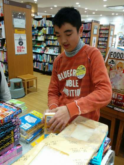今日から二日間、桂川イオンの大垣書店で実習をさせていただきます。初日の今日は、本を保護するビニール袋を本に被せて、特別な機械にかけてビニールを圧縮するシュリンクという作業を体験させていただきました。そのままお店に商品が並ぶので、とても大切な作業でした。緊張していましたが、作業が進むにつれて少しずつ感覚を掴めてきたようです。明日も大きな声で返事とあいさつを忘れずに頑張ります❗