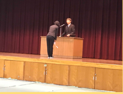 修了式のあと,読書感想画コンクールと全国高校生伝統文化フェスティバルの表彰をしました。