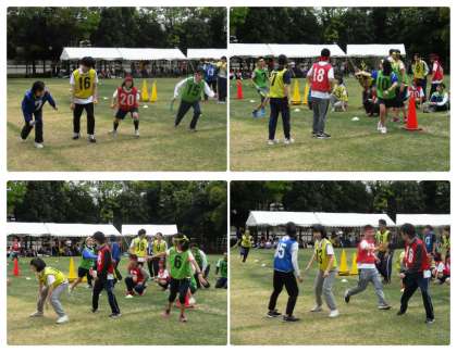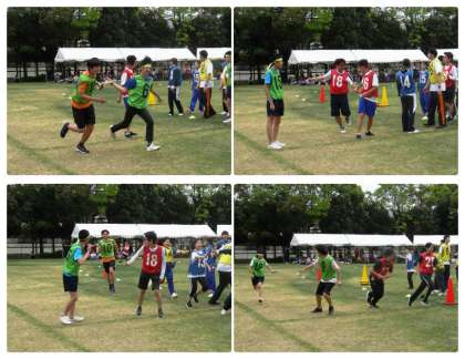 午後からの学校祭体育の部の練習では,大学生の方にもリレーチームを4チーム作って,高等部の代表チームと競争していただきました。