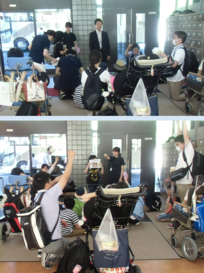 雲一つない青空のもと,出発式を終えた小学部6年生は,小学部の友達の盛大な見送りを受けて,神戸方面へと出発しました。