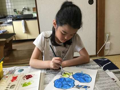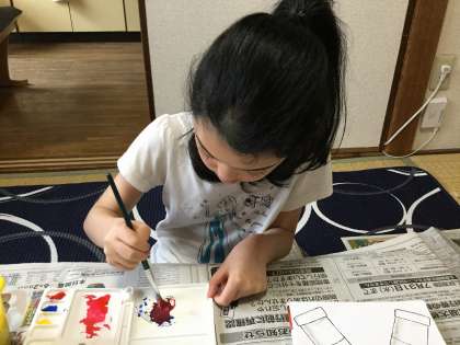 色が変わる様子を見ながら,丁寧に筆で絵の具を混ぜることができました。