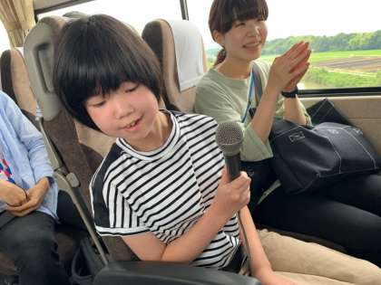 をしました。難しいクイズ、楽しいカラオケに車内は大盛り上がりです。