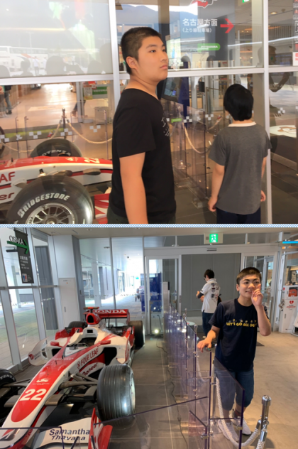 高速道路の鈴鹿SAでトイレ休憩です。本物のF1マシンが展示してありました。