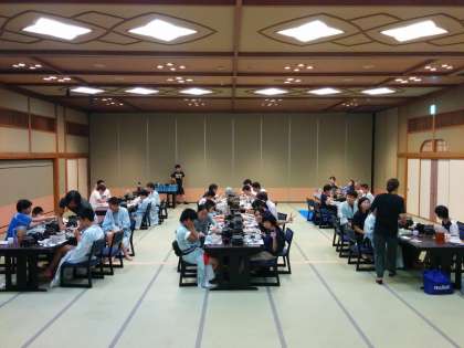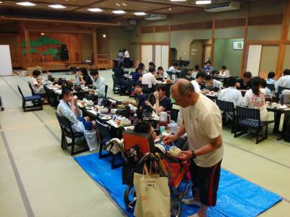 夕食は和食です。お刺身やお鍋、炊き込みご飯などをいただきました。お昼の活動でお腹が減っていたので、美味しいご飯でみんな大満足でした。