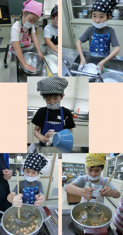 具材がやわらかくなるのを待つ間に,使った道具をみんなで洗いました。