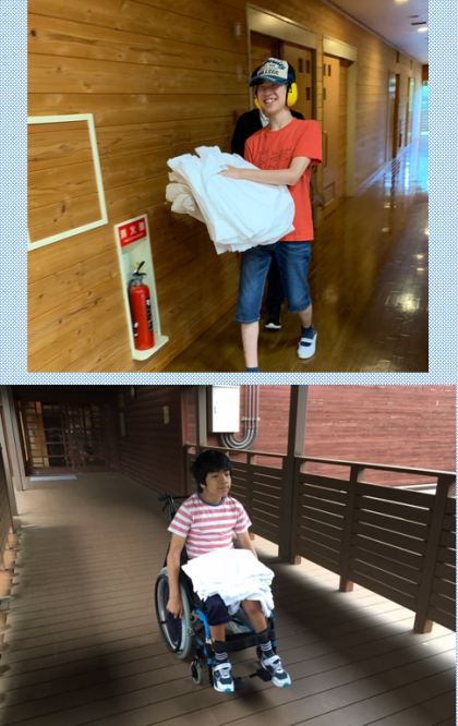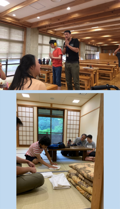 朝食を食べ終えたあと、荷物や寝具の整理をしています。