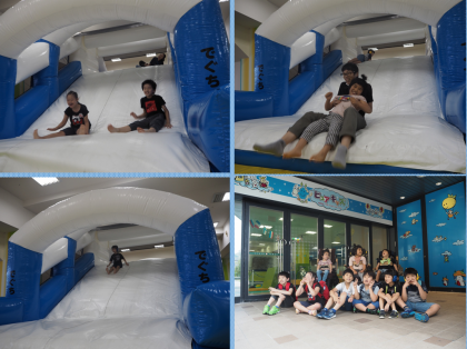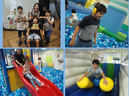 入館してすぐ目につく大きなすべり台やボールプール,ごっこ遊びコーナーにみんな待ちきれない様子で,活動開始から時間いっぱい楽しみました!