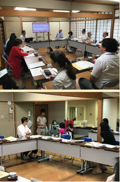 今年度第1回学校運営協議会(コミュニティ・スクール)が7月18日(木)に行われました。今年度の教育目標等を学校長より説明させていただいた後,学校運営協議会事業計画について話し合いました。また,中学部の取組についてお話をさせて頂いた後,生徒が招待状を持ってきてくれたユニットの『なつまつり』の授業を中心に参観をしていただきました。