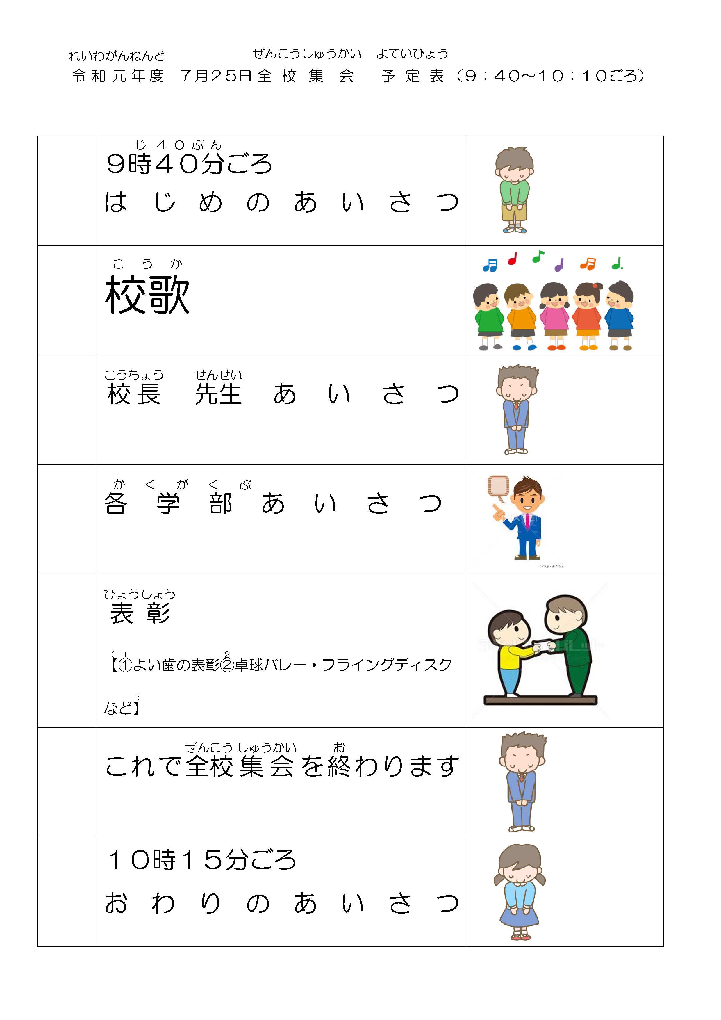 ※7月25日全校集会スケジュール
