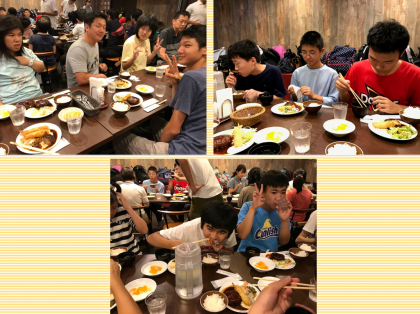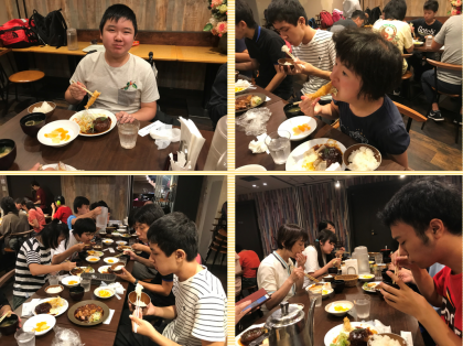 午後からのオリエンテーリングに向けて、しっかリ食べます。おかわりもしています。みんな2日目も元気です。