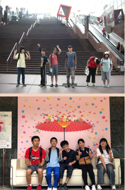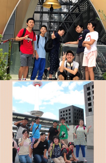 大階段や,空中経路,京都タワーをバックに記念撮影。