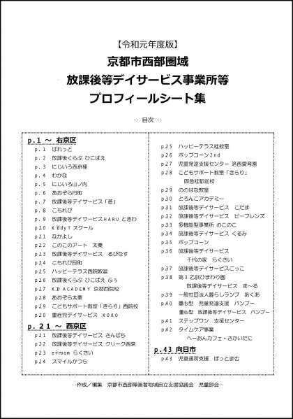 【令和元年度版】京都市西部圏域放課後等デイサービス事業所等プロフィールシート集
